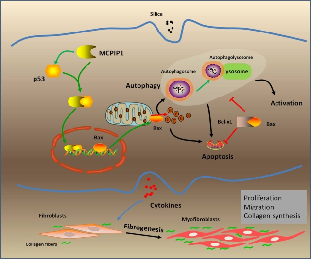 新葡的京官网巢杰教授的论文“Macrophage-derived MCPIP1 mediates silica-induced pulmonary fibrosis via autophagy”于2016年10月25日被著名期刊Particle and Fibre Toxicology发表。该期刊是毒理学研究领域排名第一的国际权威刊物(5年影响因子为9.62)。本研究探讨了MCPIP1调控巨噬细胞自噬在矽肺纤维化中的功能。矽肺是由于长期吸入游离晶体二氧化硅粉尘引起的肺纤维化疾病,一旦发生,呈进行性发展。在矽肺发展过程中,纤维组织的过度修复造成肺组织结构紊乱,从而取代正常肺组织结构;实质为肺泡损伤、胶原沉积,最终导致肺纤维化。目前矽尘引起肺纤维化的具体机制还不清楚,但作为与矽尘接触的第一道防线的肺泡巨噬细胞被认为在矽肺的发生发展中起着重要的作用。MCPIP1是一种锌指蛋白,作为炎性因子MCP-1重要的下游分子,在成纤维细胞的增殖和迁移中发挥着重要作用。本研究发现在单核细胞诱导的巨噬细胞中,MCPIP1能够通过结合p53蛋白,诱导细胞自噬反应的发生;过度的自噬引起了巨噬细胞的活化和凋亡,从而促进纤维化因子如MCP-1、TNF-α和TGF-β的分泌。有趣的是,在SiO2处理下,MCPIP1诱导的自噬促进人肺成纤维细胞的增殖和迁移。该研究证实MCPIP1介导的自噬在SiO2诱导的肺纤维中发挥着至关重要的作用。
