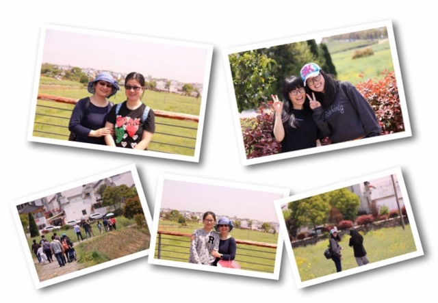 享受完草莓的酸甜,一行人便浩浩荡荡前往下一站——慢城油菜花景点。下车后三五成行漫步在慢城景区中,中午气候变得更加炎热,但是大家兴致不减,有说有笑,家属们谈论生活,同事们则更多地交流基金和实验等工作问题,近
