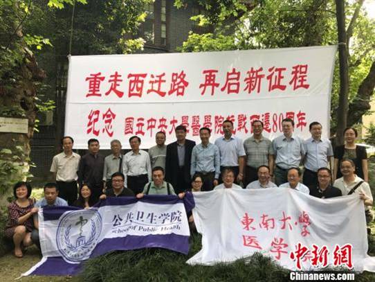 3003新葡的京集团网址与川大华西医院代表在原国立中央大学3003新葡的京集团网址牙科楼合影。刘婷摄