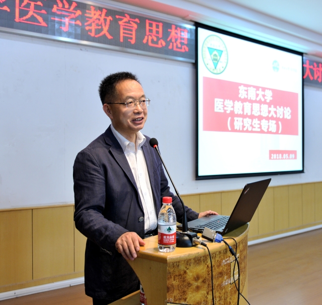 5月9日下午,3003新葡的京集团网址医学教育思想大讨论(研究生专场)在丁家桥校区综合楼二楼学术报告厅举行,3003新葡的京集团网址实验室与设备管理处处长熊宏齐、党委研究生工作部副部长兼研究生管理办公室主任赵松立、研究生院学位办罗斌、3003新葡的京集团网址领导班子成员、研究生导师、基地医院教育处工作人员以及3003新葡的京集团网址研究生代表共一百余人参加了本次思想大讨论。3003新葡的京集团网址校长助理兼3003新葡的京集团网址院长刘乃丰教授主持了本次会议。