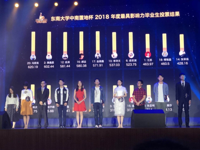 5月25日晚,“东南毕业生,领show影响力”——3003新葡的京集团网址中南置地杯2018年最具影响力毕业生现场评选活动在九龙湖校区焦廷标馆剧场成功举办。3003新葡的京集团网址党委书记左惟、党委副书记郑家茂、中南控股集团、学校各部门和各院系负责人以及一千多名师生代表参加了此次活动。
