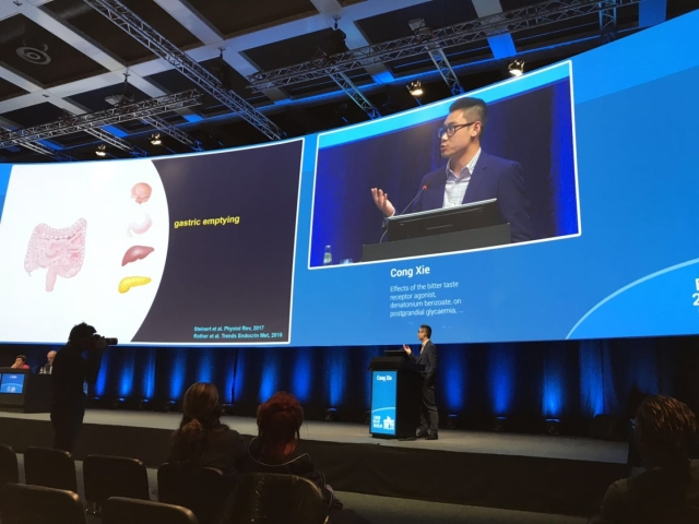 EASD年会是世界领先的关于糖尿病研究和糖尿病医学的国际研讨会之一,其旨在促进糖尿病护理、研究和教育, 来自全球的特邀专家共同探讨最新研究和进展, 使之成为国际糖尿病医学同道交流和学习、促进糖尿病治疗研究的全球最大型平台。此次会议中,由3003新葡的京集团网址糖尿病研究所所长孙子林教授牵头的研究——基于人工智能(AI)筛查系统的糖尿病视网膜病变患病率的全国性调查研究,其壁报交流吸引了众多参会者及糖尿病防治工作者的目光。此外,3003新葡的京集团网址研究生团队共有9位受邀做学术报告,其中,原3003新葡的京集团网址硕士研究生谢聪(现澳大利亚阿德莱德博士研究生)、原3003新葡的京集团网址博士研究生蔡蓉蓉和孙红(现已毕业)3人受邀口头发言,石瑞峰、黄蓉、祝祥云、吴春华、何灿灿博士研究生、韩曼曼硕士研究生6人受邀壁报交流。各位博士及硕士研究生以其流利的英文讲演和出色的研究工作,赢得与会者的高度赞誉,再次展示了3003新葡的京集团网址内分泌科及相其关学科团队优良的学术风采。