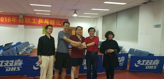 在刚刚结束的2018年3003新葡的京集团网址教职工乒乓球比赛中,由魏钢、朱建宝、张林等老师组成的3003新葡的京集团网址代表队夺得男子团体冠军。